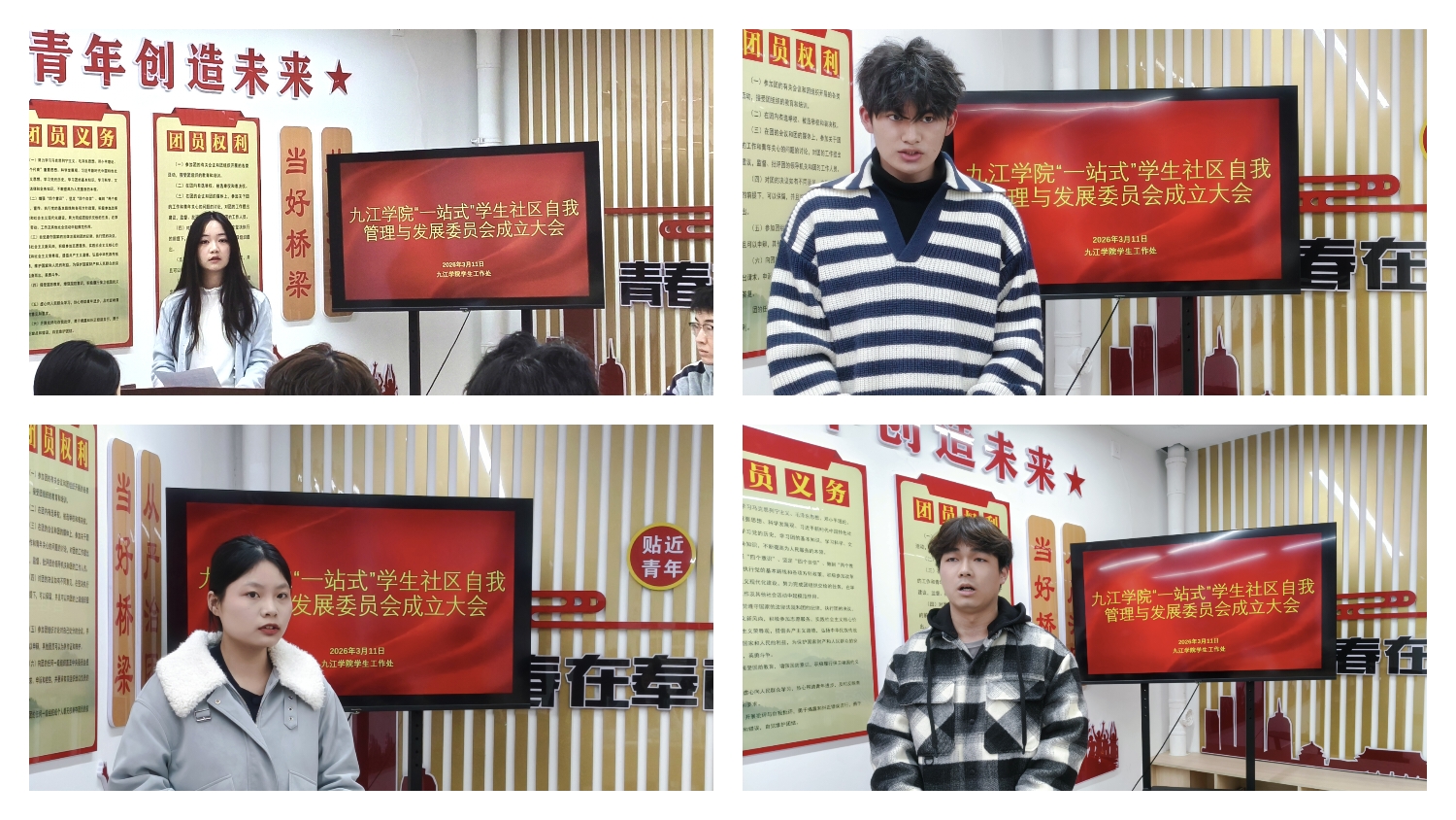 随后,学生代表及委员会各部门负责人依次发言。他们分享了对委员会工作的理解与期待,郑重表态将始终坚守委员会宗旨,立足本职岗位,倾听同学心声、传递同学诉求、回应同学关切,在服务奉献中锤炼意志、在携手同行中收获成长,全力为丰富校园文化生活、维护同学合法权益、建设和谐美好的“一站式” 学生社区贡献青春智慧与力量。